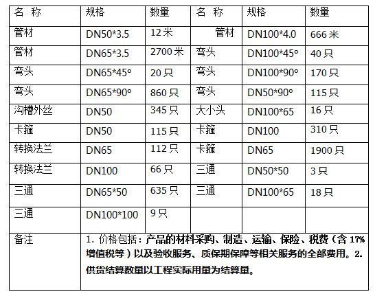 供貨范圍:給水內(nèi)外涂塑復合鋼管及相應鋼塑管件