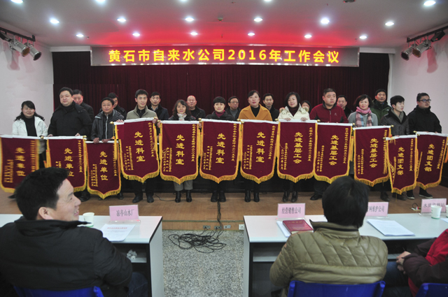 公司總經(jīng)理、黨委副書(shū)記劉子俊作了題為《勇挑重?fù)?dān),善謀開(kāi)局,奮力推進(jìn)供水事業(yè)新發(fā)展》的工作報(bào)告,全面回顧總結(jié)了2015年度工作,對(duì)2016年工作進(jìn)行了安排部署。2015年,公司深入貫徹落實(shí)十八屆四中、五中全會(huì)精神和習(xí)近平總書(shū)記系列重要講話精神,以“安全、優(yōu)質(zhì)、低耗供水”為中心,推進(jìn)“制度建設(shè)年”活動(dòng),全年實(shí)現(xiàn)售水量7844.98萬(wàn)噸,實(shí)現(xiàn)經(jīng)營(yíng)總收入21157萬(wàn)元,完成供水管網(wǎng)建設(shè)20.08公里,新裝水表17490戶,產(chǎn)銷差率22.2%,管網(wǎng)水質(zhì)綜合合格率達(dá)到99.9%,連續(xù)14年無(wú)重大安全事故發(fā)生。先后榮獲“湖北省文明單位”、“湖北省優(yōu)秀企業(yè)”、“黃石市安全生產(chǎn)先進(jìn)單位”、“黃石市工會(huì)工作創(chuàng)先爭(zhēng)優(yōu)先進(jìn)單位”等稱號(hào)。2016年,公司將以黨的十八大和十八屆四中、五中全會(huì)精神為指導(dǎo),按照市委提出的“堅(jiān)持生態(tài)立市、產(chǎn)業(yè)強(qiáng)市,加快建成現(xiàn)代化特大城市”要求,堅(jiān)持“安全、優(yōu)質(zhì)、低耗供水”的工作中心,開(kāi)展“供水智能信息化推進(jìn)年”活動(dòng),明確生產(chǎn)經(jīng)營(yíng)目標(biāo)任務(wù);同時(shí)確定了9項(xiàng)重點(diǎn)工作:一是實(shí)施有色公司改水工程,二是建立地下供水管網(wǎng)地理信息系統(tǒng),三是升級(jí)營(yíng)業(yè)收費(fèi)系統(tǒng),四是探索實(shí)施公司制改造,五是加大更新改造力度,六是加大供水設(shè)施建設(shè)力度,七是啟動(dòng)檔案管理升級(jí)工作,八是進(jìn)一步推進(jìn)分配制度改革,九是抓好黨風(fēng)廉政建設(shè)。