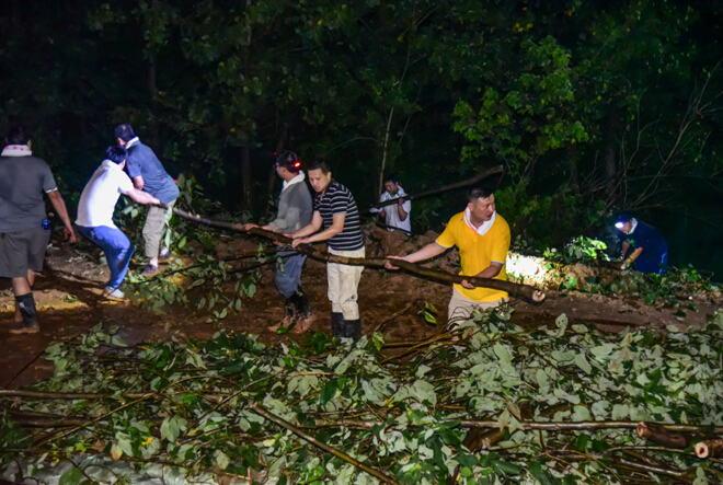突擊搶險(xiǎn)任務(wù)是要求將堤坡上所有的樹干、樹枝裝上車。晚上,燈光昏暗,再加上有的樹枝被土方淹埋,有的樹干要幾個(gè)人才能拉動(dòng),隊(duì)員們相互配合,齊心協(xié)力,汗如雨下,不顧蚊蟲叮咬,有的現(xiàn)場(chǎng)手被樹干劃出了血。黨員王斌、繆魁沖鋒在前,帶頭扛起大樹枝、埋壓的樹枝,在抗洪一線發(fā)揮了模范帶頭作用。經(jīng)過(guò)4個(gè)多小時(shí)的奮戰(zhàn),一共拖走了18車樹枝,晚上12點(diǎn)才將500米堤段的散放樹枝裝車完畢。隊(duì)員們個(gè)個(gè)是一身汗水一身泥水,個(gè)個(gè)拖著疲憊的身子,回家時(shí)已是半夜1點(diǎn)多了。