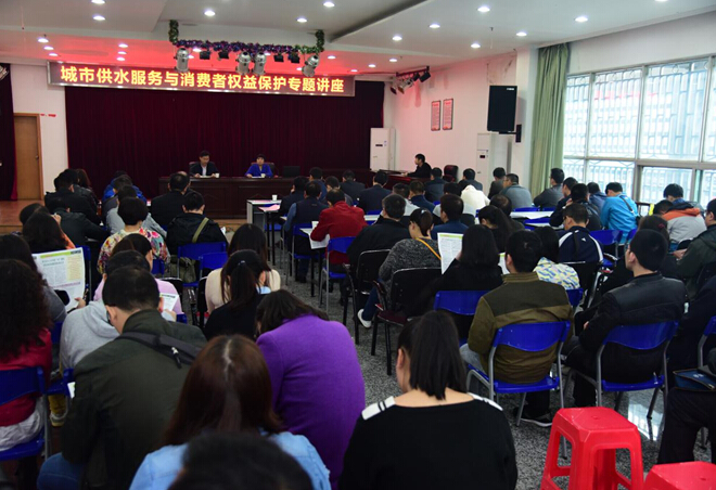 為進(jìn)一步提高“兩學(xué)一做”學(xué)習(xí)教育實(shí)效性和針對(duì)性,10月27日下午,公司在二樓會(huì)議室舉辦“城市供水服務(wù)與消費(fèi)者權(quán)益保護(hù)”專題講座,邀請(qǐng)市消費(fèi)者委員會(huì)柯佳玲秘書(shū)長(zhǎng)作專題宣講。公司黨委書(shū)記余曦同志主持講座,公司客服中心、經(jīng)營(yíng)銷(xiāo)售公司、管網(wǎng)維護(hù)公司、市場(chǎng)開(kāi)發(fā)辦、改水辦等窗口服務(wù)單位、部門(mén)的干部職工共80余人參加了此次講座。