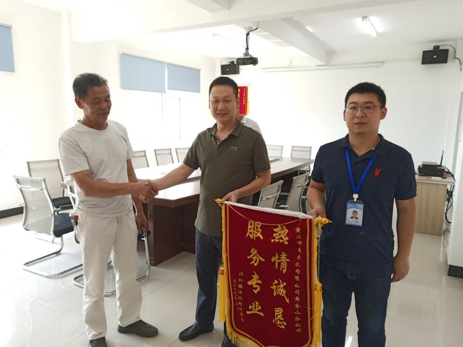 6月4日上午,汪仁鎮(zhèn)汪仁村相關(guān)負(fù)責(zé)人代表全村來(lái)到市自來(lái)水有限公司黃金山供水分公司,送來(lái)了一幅印有“服務(wù)專業(yè) 熱情誠(chéng)懇”的錦旗,對(duì)他們貼心為民服務(wù)、真誠(chéng)為民解憂的行為表示感謝。