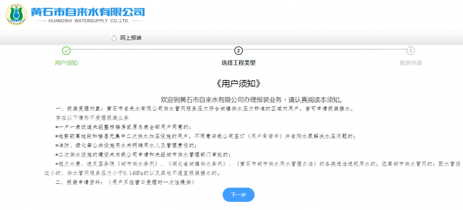為了進(jìn)一步優(yōu)化營(yíng)商服務(wù),公司創(chuàng)新采用“互聯(lián)網(wǎng)+供水新模式”,開(kāi)通用戶(hù)網(wǎng)上報(bào)裝,實(shí)現(xiàn)“最多跑一次”。即日起用戶(hù)辦理報(bào)裝可使用“黃石市自來(lái)水有限公司”微信公眾號(hào)或者黃石市自來(lái)水有限公司官方網(wǎng)站(http://www.jmdykj.com)中網(wǎng)上報(bào)裝功能,報(bào)裝資料經(jīng)后臺(tái)審核合格后,業(yè)務(wù)人員會(huì)主動(dòng)與用戶(hù)取得聯(lián)系,做好對(duì)接服務(wù)工作,避免了用戶(hù)的來(lái)回奔波,形成線(xiàn)上線(xiàn)下功能互補(bǔ),提高用戶(hù)滿(mǎn)意度。