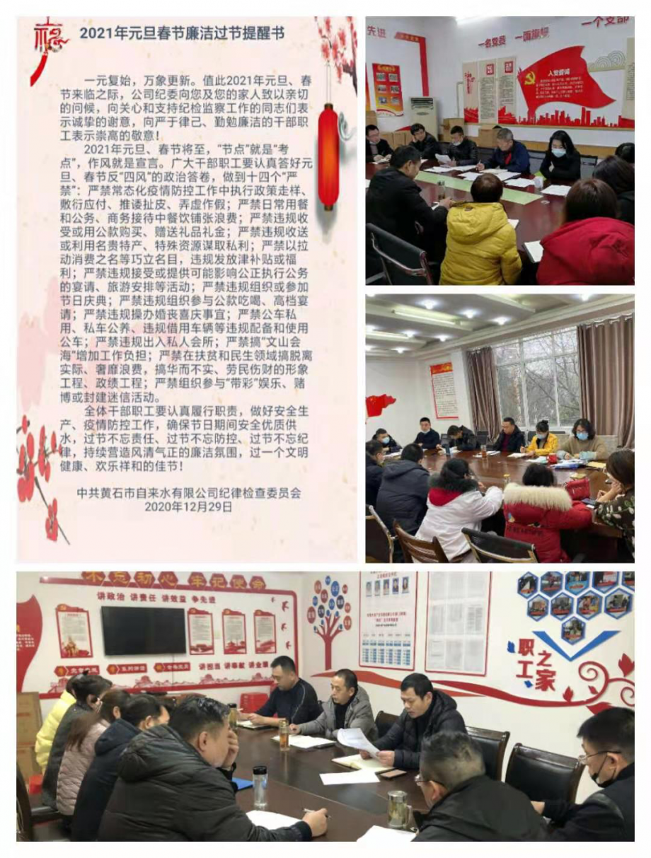 早提醒,打好廉潔“預(yù)防針”。公司紀(jì)委發(fā)布《廉潔過節(jié)提醒書》、開辦“以案明紀(jì)”專欄,全員教育提醒;對重點(diǎn)領(lǐng)域和關(guān)鍵環(huán)節(jié)單位、部門集體廉政談話,增強(qiáng)“免疫力”;全體紀(jì)檢干部撰寫十九屆中紀(jì)委五中全會公報(bào)學(xué)習(xí)心得,提升執(zhí)紀(jì)能力。公司各級黨組織嚴(yán)明紀(jì)律要求共開展學(xué)習(xí)14次,繃緊節(jié)日廉潔自律弦。