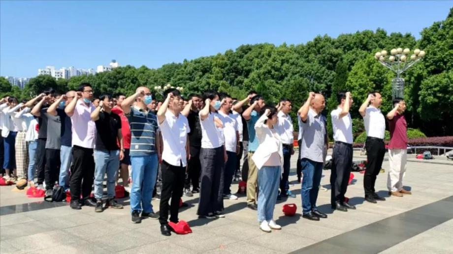 在莊重嚴(yán)肅的黃麻起義和鄂豫皖蘇區(qū)革命烈士紀(jì)念碑前,黨員同志們整齊列隊(duì),瞻仰紀(jì)念碑,敬獻(xiàn)花籃,寄托哀思,隨后集體重溫入黨誓詞。鏗鏘有力的宣誓聲響徹紀(jì)念園,訴說著大家的初心、使命。