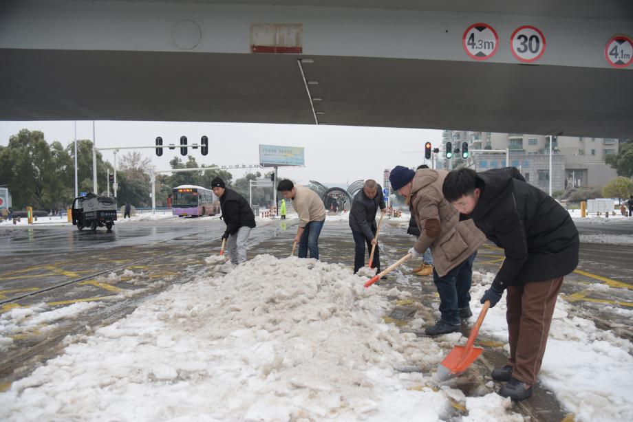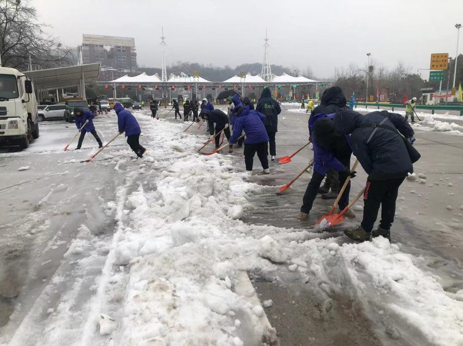 市水務集團應急隊伍清掃高速路口積雪積冰