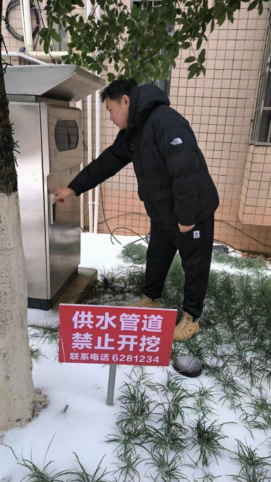 市水務集團清掃冰雪,檢查二次供水設施運行情況