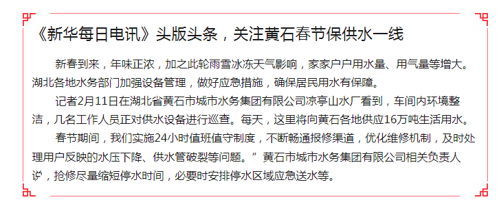 “水務(wù)集團(tuán)已經(jīng)備足應(yīng)急處置物資材料,供水保障人員、熱線(xiàn)服務(wù)人員、搶修人員嚴(yán)格實(shí)施24小時(shí)值班值守制度,”該集團(tuán)安全生產(chǎn)部門(mén)人員表示,“集團(tuán)對(duì)所屬各廠(chǎng)站實(shí)施全時(shí)監(jiān)測(cè),科學(xué)調(diào)度,嚴(yán)格水質(zhì)檢測(cè)監(jiān)控,確保冰凍天氣供水安全”。