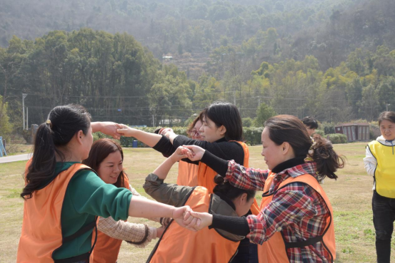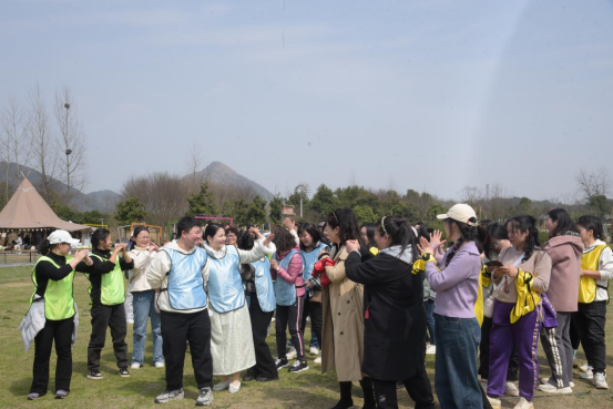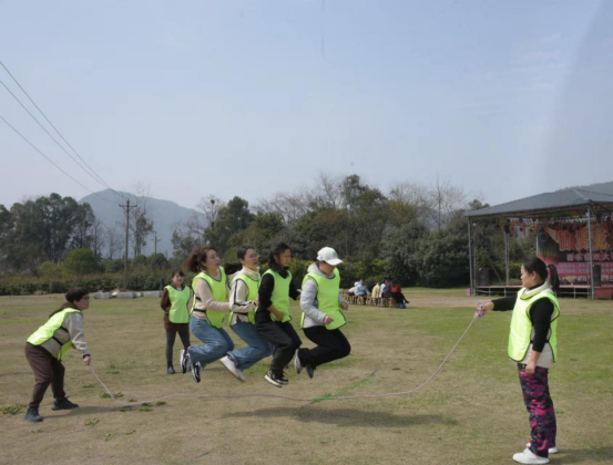 緊接著,女職工們?cè)谌嗉绱繁?、花開(kāi)花落等熱身破冰運(yùn)動(dòng)后,組成5隊(duì)進(jìn)行PK,團(tuán)建趣味活動(dòng)內(nèi)容豐富多彩,既有跳大繩等傳統(tǒng)的體育項(xiàng)目,也有考驗(yàn)團(tuán)隊(duì)默契配合的“解手鏈”,還有考驗(yàn)智慧的“算二十四點(diǎn)”。隊(duì)員們情緒高漲,各顯神通,使出渾身解數(shù)。整個(gè)賽場(chǎng)熱鬧非凡,口號(hào)聲、加油聲、吶喊聲、歡笑聲不絕于耳。