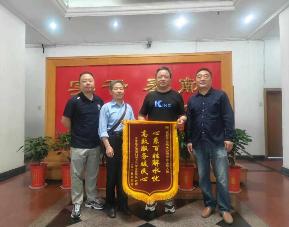 4月11日上午,金棗苑月亮灣13棟五六層居民代表將一面印有“心系百姓解水憂 高效服務(wù)暖民心”的錦旗送至黃石市水務(wù)集團(tuán)客服中心,感謝集團(tuán)徹底解決了困擾居民多年的高層水壓不足問題。據(jù)了解,因管網(wǎng)老舊和地勢因素,該樓棟五、六層住戶長期面臨用水難題。高峰期水流如線、熱水器無法啟動(dòng),洗衣做飯等基本生活需求都成困擾。2025年3月,客服中心接訴即辦,積極響應(yīng)群眾訴求,組建專班實(shí)地勘察,迅速制定改造方案,經(jīng)過為期2天的緊張施工,徹底解決了小區(qū)居民的吃水難題??头行闹魅螀纬航舆^錦旗時(shí)表示:這面錦旗既是榮譽(yù)更是鞭策,下一步,黃石水務(wù)集團(tuán)將繼續(xù)堅(jiān)持“用戶至上”的服務(wù)理念,在工作中用心、用情、用力為用戶創(chuàng)造良好的用水環(huán)境,真正把優(yōu)質(zhì)服務(wù)落實(shí)在行動(dòng)上。