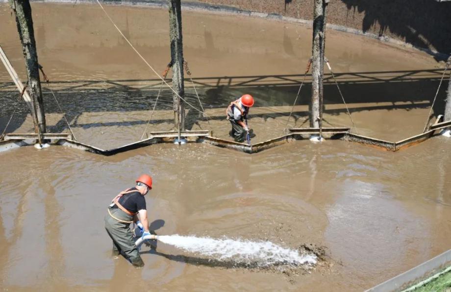 7 月下旬,青山湖污水廠拉響 “警報(bào)”。1 號(hào)二沉池刮泥機(jī)因連日高溫下長期高負(fù)荷運(yùn)轉(zhuǎn),刮泥板零部件扭曲變形、脫落。要知道,刮泥機(jī)一旦停擺,污水處理沉淀環(huán)節(jié)將陷入混亂,進(jìn)而影響整個(gè)工藝流程的穩(wěn)定運(yùn)行。為將對(duì)污水處理工藝的影響降到最低,市污水公司迅速行動(dòng),多次組織研討,精心優(yōu)化維修方案。在完成向上級(jí)報(bào)備,并采取降低進(jìn)水量、排水放空等預(yù)處理措施后,維修中心與青山湖廠部緊密配合。維修人員身著厚重防護(hù)裝備,毅然踏入池底。高溫下,他們分工明確,沖洗、檢測、拆卸、安裝等工序有條不紊地進(jìn)行著,專注修復(fù)更換刮泥機(jī)破損部位。經(jīng)過不懈努力,7 月 30 日,1 號(hào)二沉池恢復(fù)正常運(yùn)轉(zhuǎn)。