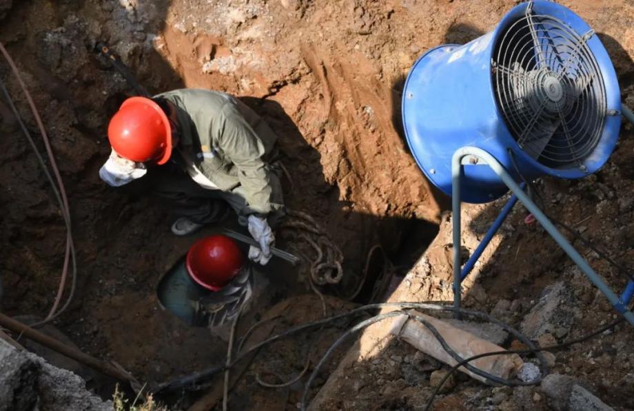 這邊青山湖污水廠的搶修剛剛告一段落,花湖污水廠又出現(xiàn)緊急狀況。7 月 29 日,值班人員發(fā)現(xiàn)曝氣池進(jìn)水污水管地面滲水,初步判斷是管道老化破裂。若不及時(shí)修復(fù),污水外溢將嚴(yán)重污染周邊環(huán)境。情況上報(bào)后,公司迅速響應(yīng),現(xiàn)場指揮調(diào)度有序開展。挖掘機(jī)持續(xù)近三小時(shí)作業(yè),終于找到破損點(diǎn)。工作人員嚴(yán)格按照專業(yè)流程進(jìn)行安全作業(yè),在有限且悶熱的管道空間內(nèi),蜷縮著身體焊接,每半小時(shí)輪換一次。盡管汗水濕透衣衫,手臂被管道燙出紅痕,但他們沒有絲毫退縮,只為盡快排除隱患。