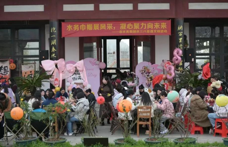 為慶?!叭恕眹H婦女節(jié),豐富女職工文化生活,凝聚巾幗奮進(jìn)力量,3月6日下午,水務(wù)集團(tuán)在團(tuán)城山濕地公園清風(fēng)閣開展慶三八非遺文創(chuàng)學(xué)習(xí)暨巾幗勞模宣講活動(dòng)。