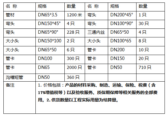 4.)供貨范圍:給水內(nèi)外涂塑復合鋼管及相應管件