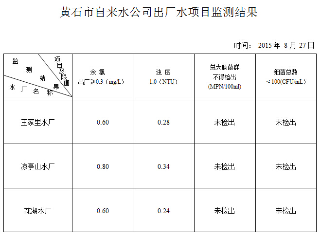 8月27日出廠水項目監(jiān)測結(jié)果