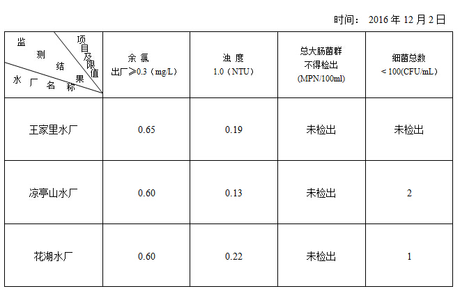 12月2日出廠水項目監(jiān)測結(jié)果