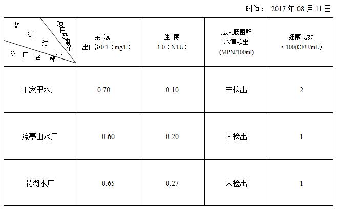 8月11日出廠水項(xiàng)目監(jiān)測(cè)結(jié)果