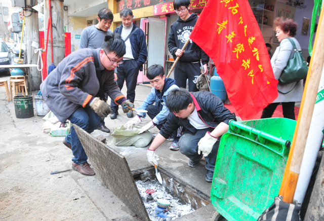 3月4日下午,10支突擊隊(duì)分赴城區(qū)各處開(kāi)展水表井“滅四害”清理大行動(dòng)。由于一些水表井位處農(nóng)貿(mào)市場(chǎng)周邊,加之遭到一些人為破壞,導(dǎo)致水表井內(nèi)污水橫流、垃圾堆積、老鼠亂竄、爬蟲(chóng)四起,但這都未使大家退縮,黨員干部身先士卒,帶頭鏟垃圾、清淤泥,其他同志分工配合,污水抽排,垃圾清運(yùn),殺蟲(chóng)投藥,大家干起活來(lái)毫不含糊,不管多臟多臭都直接上手。