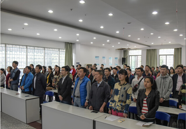 圖為,參加“道德講堂” 的干部職工合唱道德歌曲。