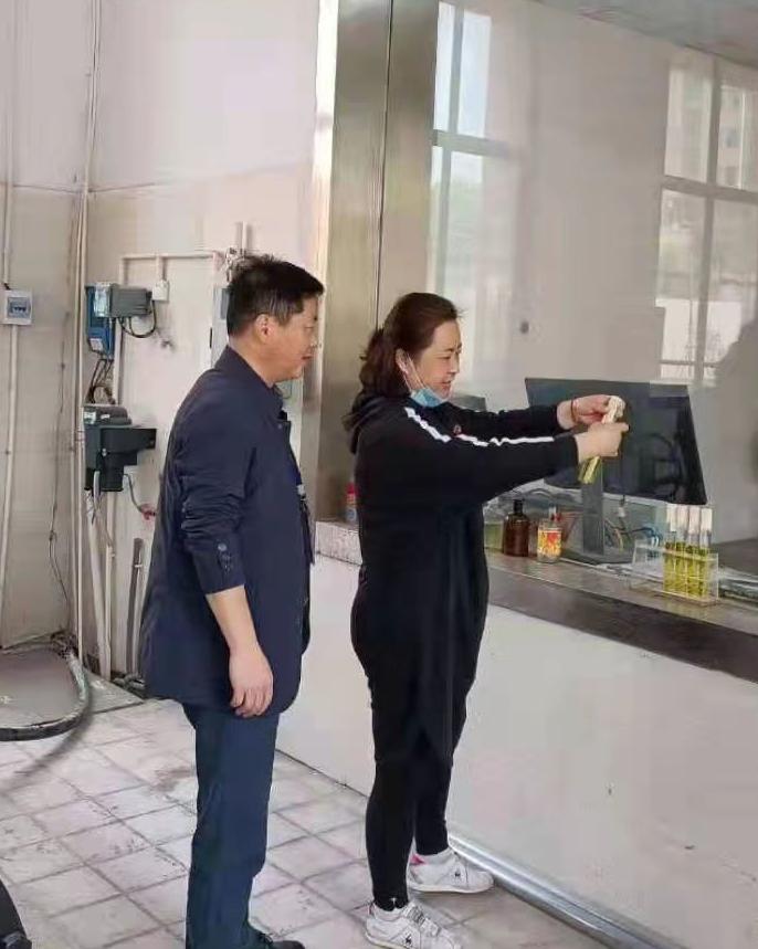 圖8:下陸加壓總站紀(jì)檢委員苗鵬監(jiān)督檢查水質(zhì)檢測(cè)情況