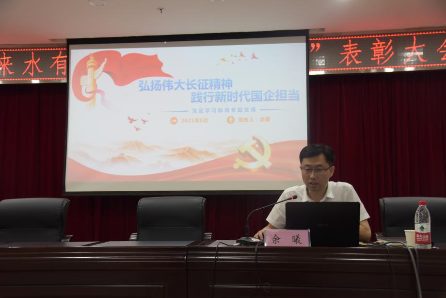 公司黨委書記、董事長余曦同志以《弘揚偉大長征精神 踐行新時代國企擔當》為題講授黨課,生動的回顧了長征的宏偉歷程,從實事求是、密切聯(lián)系群眾、艱苦奮斗、愛國愛人民等四個方面深刻剖析了長征精神內(nèi)涵,并結(jié)合公司工作實際,強調(diào):一是要堅定理想信念,踐行初心使命;二是堅持艱苦奮斗,全力保障民生;三是堅持實事求是,深化改革轉(zhuǎn)型;四是深化作風建設,永葆黨員本色。