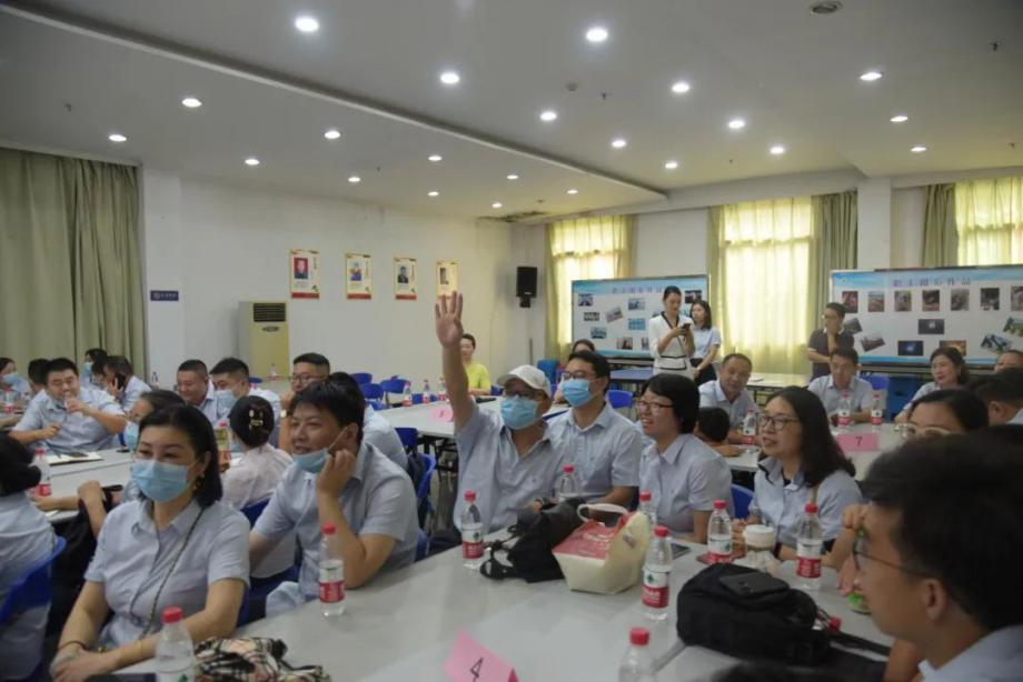 理解責(zé)任與忠誠、做到愛崗敬業(yè),既是滿足“孩子面包自由”的生活需求,也是實(shí)現(xiàn)自我價(jià)值提升的途徑,更有著滿足全市市民用水需求的重要意義。來自知書習(xí)禮(黃石)文化傳播有限公司的老師諄諄引導(dǎo)參與人員認(rèn)知工作的意義、崗位的責(zé)任。職工們分組圍坐,組建團(tuán)隊(duì),為團(tuán)隊(duì)冠名,選出心儀的領(lǐng)隊(duì),在“移花接木”的小游戲中與隊(duì)友開始熟絡(luò),踴躍搶答老師提出的問題,為團(tuán)隊(duì)爭奪到獎(jiǎng)分歡呼雀躍,課堂氣氛活躍。