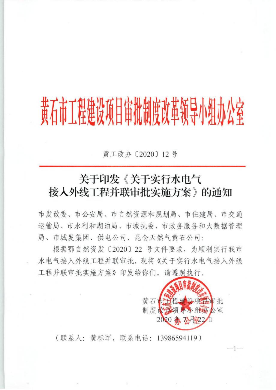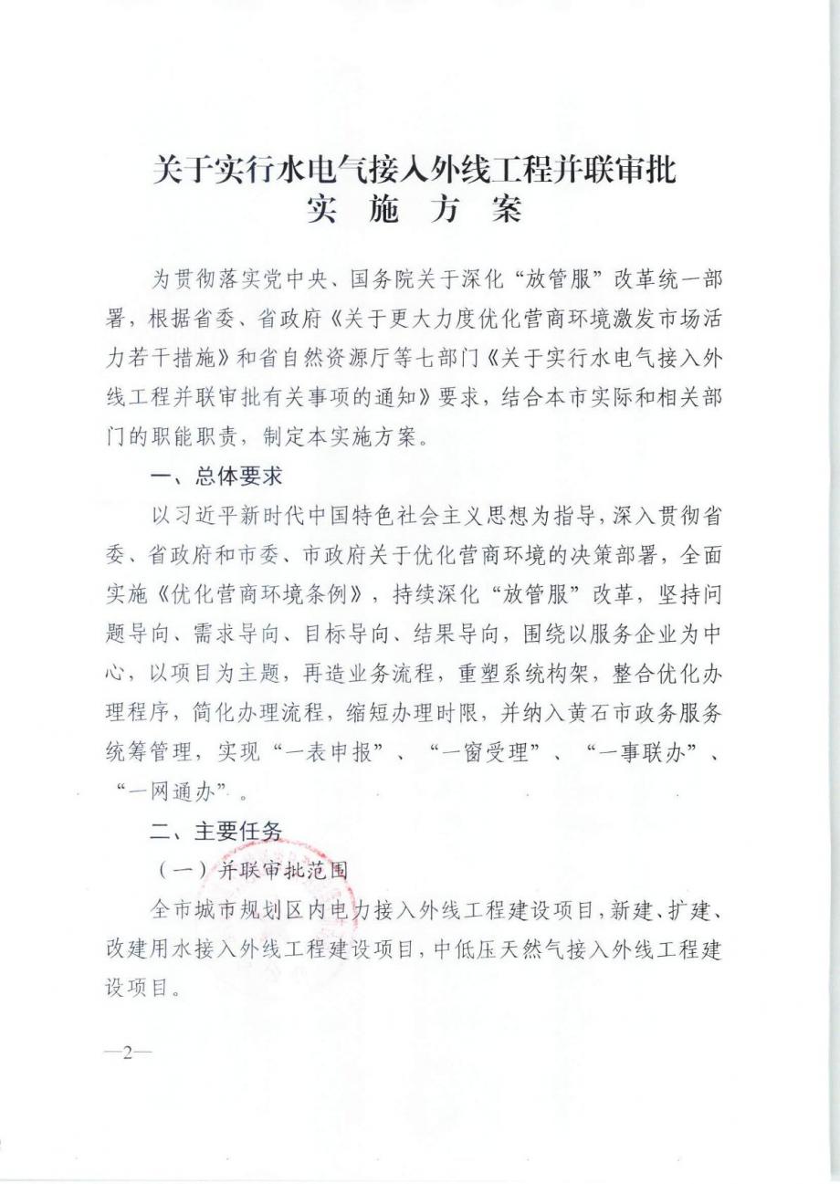 關(guān)于印發(fā)《關(guān)于實(shí)行水電氣接入外線工程并聯(lián)審批實(shí)施方案》的通知