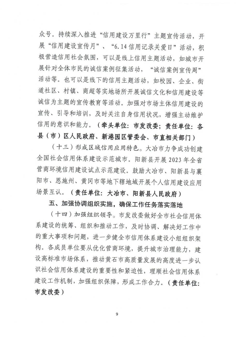 關(guān)于印發(fā)《2023 年黃石市信用體系建設(shè)工作要點》的通知