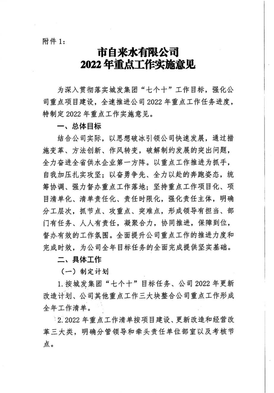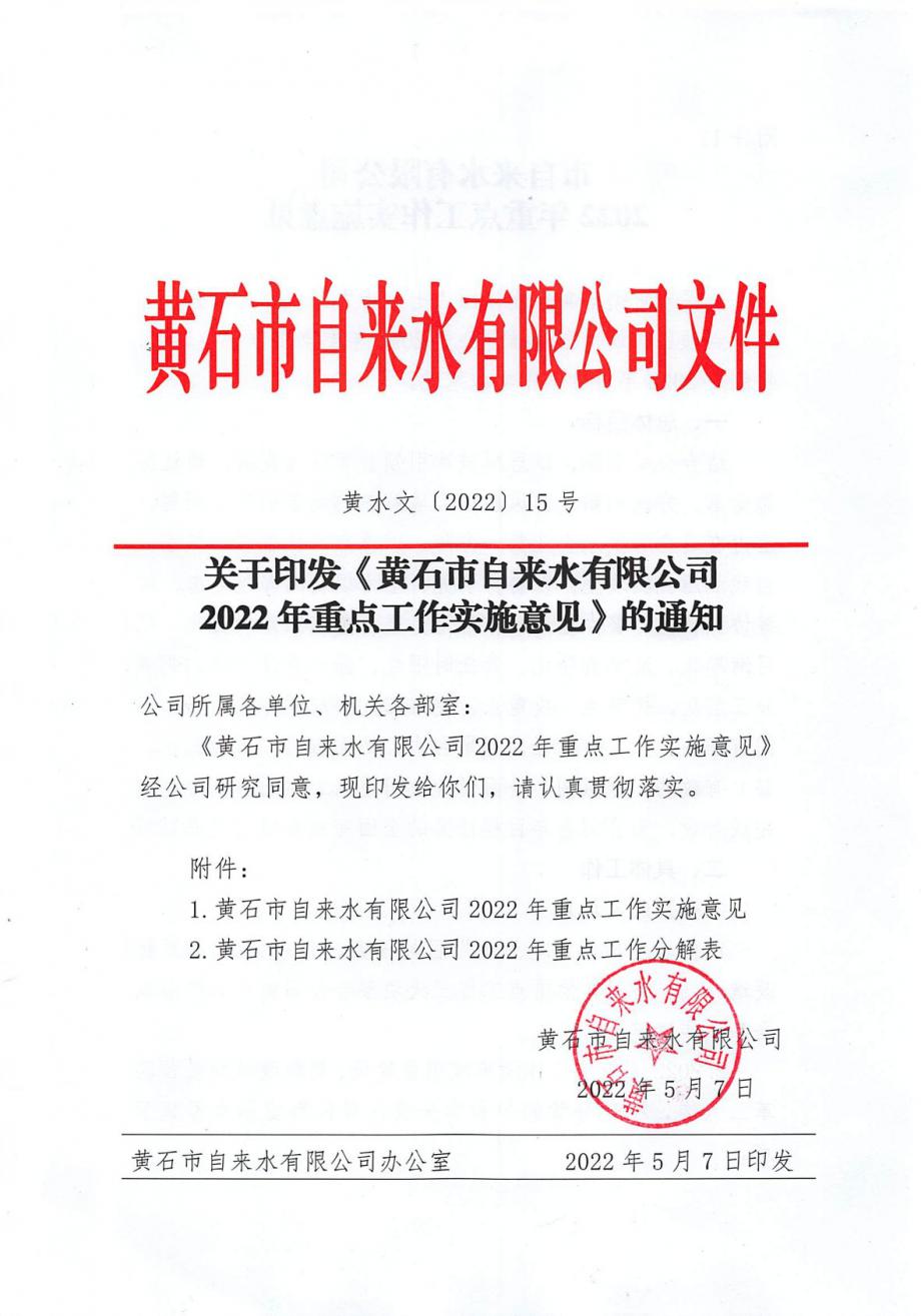 關(guān)于印發(fā)《黃石市自來水有限公司2022年重點(diǎn)工作實(shí)施意見》的通知