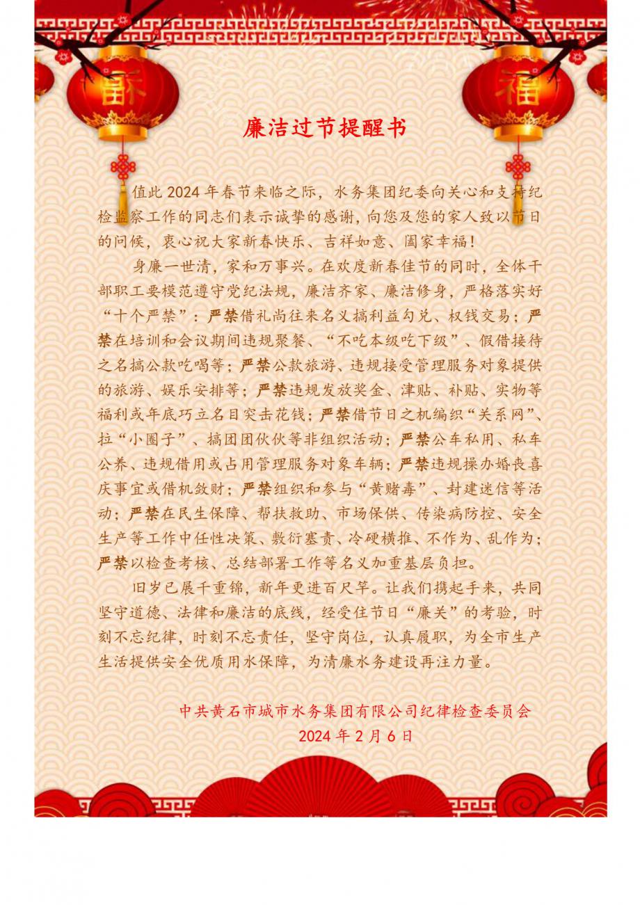 2024年春節(jié)廉潔過(guò)節(jié)提醒書(shū)