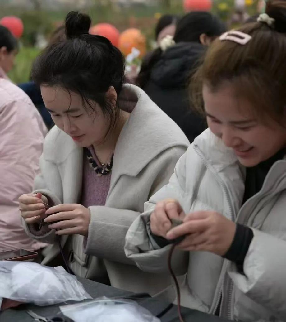 活動(dòng)現(xiàn)場,女職工們在老師指導(dǎo)下,親手制作云紗花朵手工掛飾,穿針引線、精心制作,在指尖創(chuàng)作中感受非遺文化魅力,體會(huì)匠心精神,收獲創(chuàng)作樂趣。